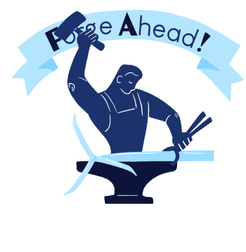 An animated blacksmith hammers metal on an anvil under a 'Forge Ahead!' banner, symbolizing progress for the Build Back Better Framework.