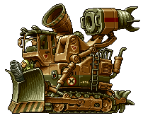 Animated pixel art sticker featuring the powerful Metal Slug Bull Drill vehicle, equipped with a prominent drill and gun.