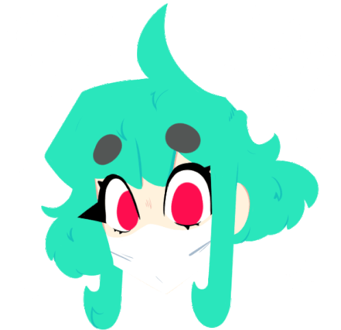 Bun Bunnerson, a cute anime-style character, smiles happily while wearing a protective white face mask.