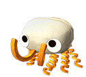 Bunger from Bugsnax transforms, revealing a hamburger body and curly fry limbs in this animated sticker.