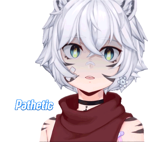 Bungotaiga, a white tiger Vtuber, stares blankly with the word 'Pathetic' displayed, conveying a dismissive mood.