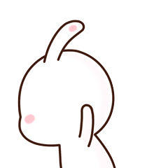 A cute white bunny sticker with pink cheeks and ears, looking confused or unsure with a slight shrug.