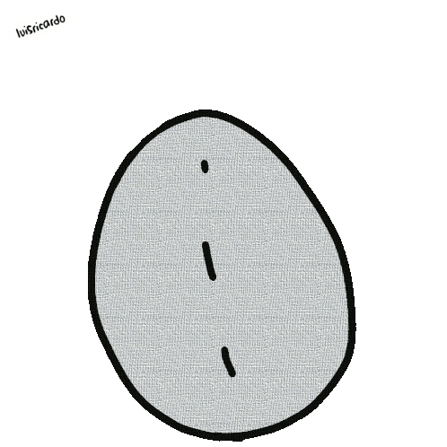 A surprised Easter Bunny with big eyes and pink nose is depicted falling inside a light gray egg shape, ready for Easter.
