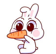 An adorable white bunny with big, sparkling eyes happily holds and eats a large orange carrot.