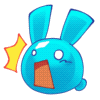 Bunny Freaker, the blue character from Regretevator, looks surprised with a yellow exclamation mark.