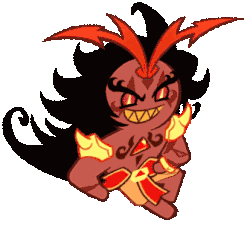 Burning Spice Cookie, a fiery character with red skin and sharp teeth, animated and ready to spice up your messages.