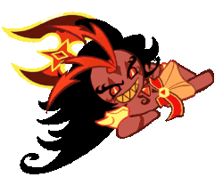 Burning Spice Cookie, a pixel art character with long orange hair and a white bow, winks and smiles playfully.