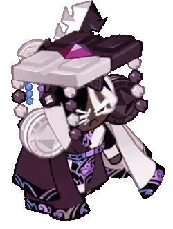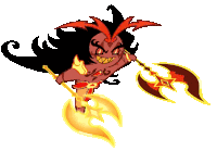 Animated pixel art sticker of Burning Spice Cookie, a devilish character wielding a fiery sword.