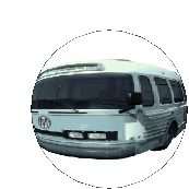 A white bus, reminiscent of vehicles from Burnout Paradise, rotates within a circular frame, creating a meme.