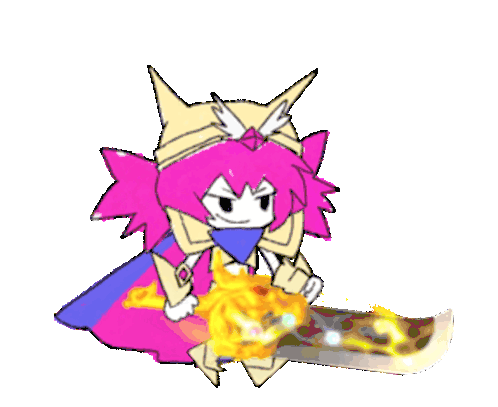 Buro from Muse Dash, a vibrant character with pink hair, wields a large, glowing divine gear sword in a dynamic pose.
