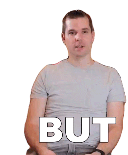 Dave Crosby from The Crosbys family, expressing a thought with the word 'BUT' appearing on screen.