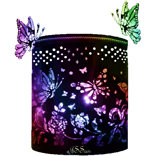 A magical color-changing lantern adorned with glowing butterflies and floral patterns, creating a vibrant, enchanting display.