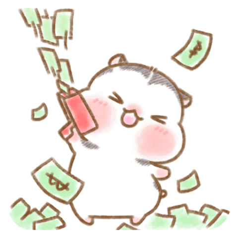 A cute, chubby hamster character joyfully receives a shower of green banknotes, holding a red envelope with a happy expression.