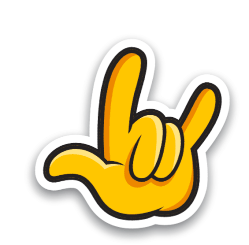 A vibrant yellow cartoon hand forms the 'I Love You' sign in American Sign Language, representing Sorenson Communications.