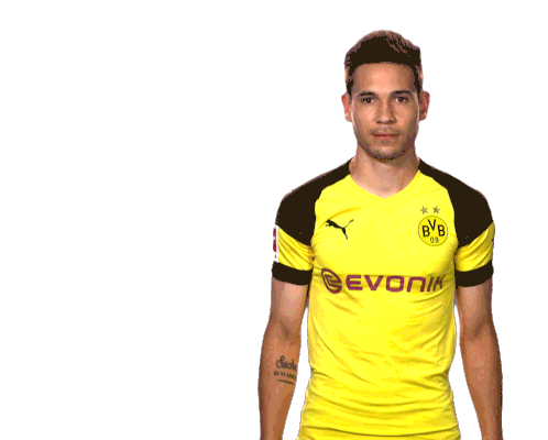Raphaël Guerreiro, wearing his BVB Dortmund jersey, makes a heartfelt gesture, showing love and appreciation.