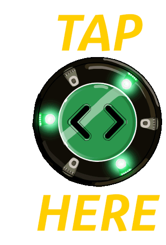 An animated green button with 'TAP HERE' text, glowing and inviting interaction for bwegt.