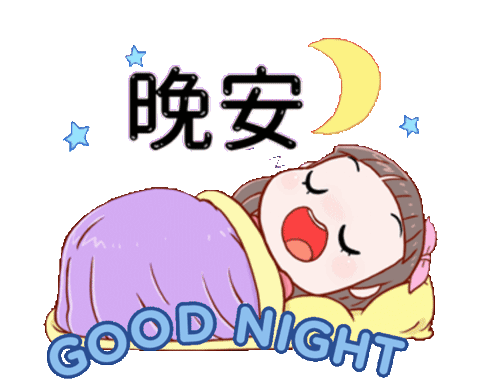 A cute cartoon girl by Ednastochi sends good night wishes, first hugging a pillow, then sleeping soundly.