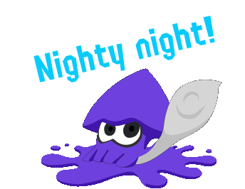 A cute purple Splatoon squid character says 'Nighty night!' before disappearing in a splash of ink.