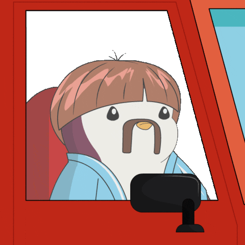 Pudgy Penguin character slowly slides down and disappears from view, saying 'bye nope' in a funny, awkward way.