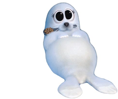 A cute, round seal character shrugs and drops its fork, conveying a 'Bye See Ya' or 'Oh Well' sentiment.