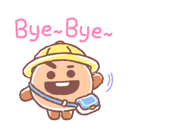 A charming cartoon character with a yellow hat and blue bag waves goodbye, expressing a cheerful farewell.