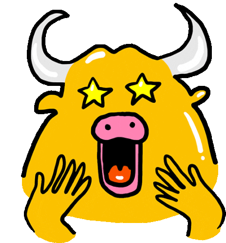 An animated sticker featuring a bull with a surprised expression, waving goodbye. Perfect for expressing farewell with a touch of humor.