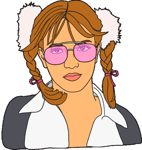 Bynorafikse's drawing of Britney Spears in 90s style, featuring pigtails and sunglasses.