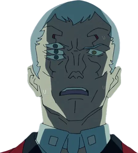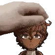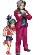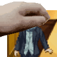 Byrne Faraday, the Ace Attorney character, in pixel art, wearing a suit and tie with a hand covering his head.
