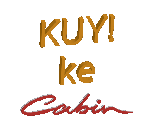 An animated sticker inviting people to 'Cabin' in Bogor, Indonesia, featuring stylized text 'KUY! ke Cabin'.