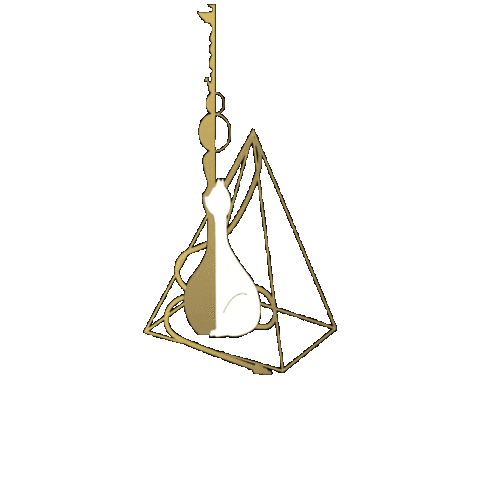 An animated golden and white logo featuring a stylized hookah or shisha pipe within a geometric frame.