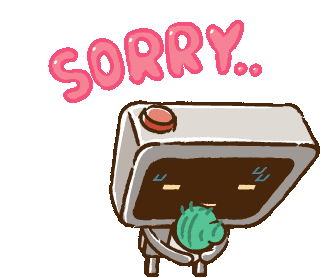 A cute cactus robot expresses a heartfelt apology, holding a green yarn ball and saying 'Sorry'.