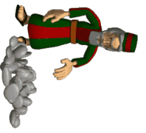 An angry cartoon character, possibly Caillasse, throws a stream of grey stones with force and determination.