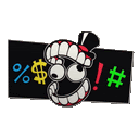 a cartoon character with a top hat and big teeth is holding a sign with a dollar sign and a hashtag .