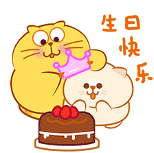 Adorable cartoon cats celebrate a birthday with a chocolate cake and a sparkling crown. A sweet and festive sticker.
