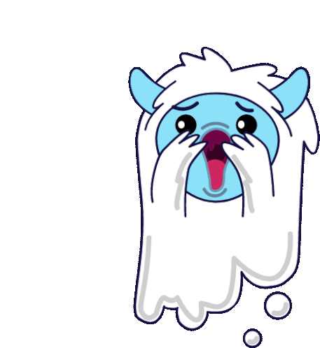 The Cake Monster, Cms1, appears as a shocked and ghostly yeti-like creature, covering its face in surprise.