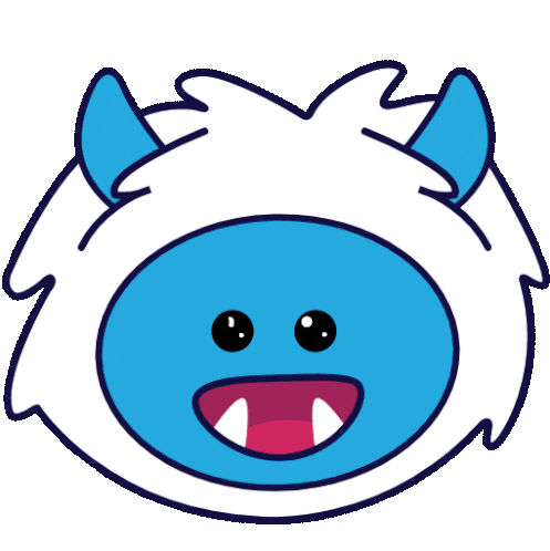 Animated sticker of Cake Monster Emonji, a cute yeti character laughing so hard it cries.