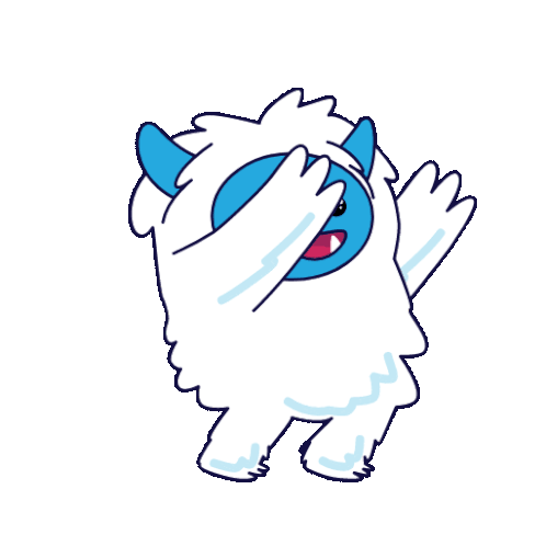 A fluffy white monster with blue features does a happy dance as golden coins fall around it.