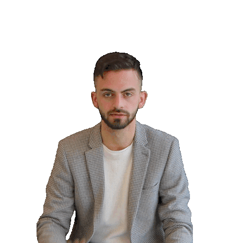 Caleb Pikoulas Collings makes a stop gesture with his hand, accompanied by the bold red text 'STOP!' above his head.