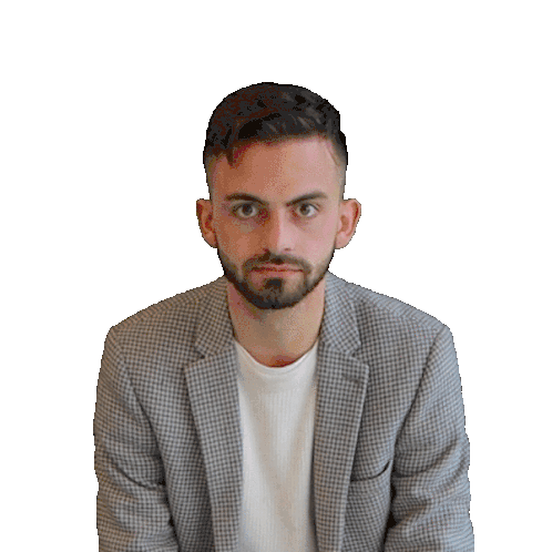 Caleb Pikoulas Collings is visibly angry, with a red face and smoke billowing from his ears, wearing a blazer.
