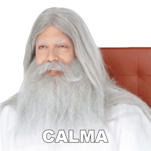 Fábio Porchat, dressed as a wise, long-haired figure, conveys a sense of calm with the word "CALMA" displayed, perfect for telling someone to relax.