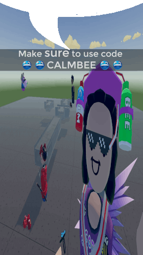 a cartoon character with a speech bubble that says make sure to use code calmbee on it