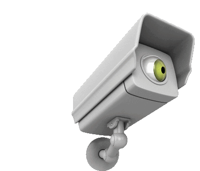 A security camera with a blinking green eye, constantly watching and observing its surroundings.