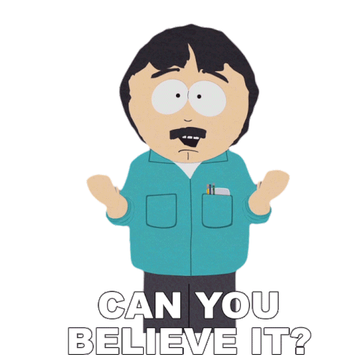 Randy Marsh from South Park shrugging with wide eyes and open mouth, asking 'Can You Believe It?' in disbelief.