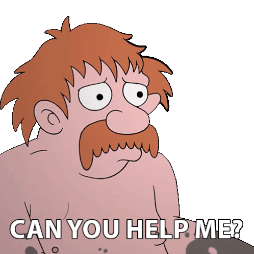 King Zøg from Disenchantment, looking distressed, asks 'Can You Help Me?' with wide, pleading eyes.