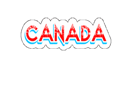 The word 'CANADA' in red and blue with a white outline bounces playfully, perfect for showing national pride.