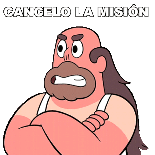 Greg Universe from Steven Universe, with a frustrated expression and crossed arms, declares 'CANCELO LA MISIÓN' (I cancel the mission).
