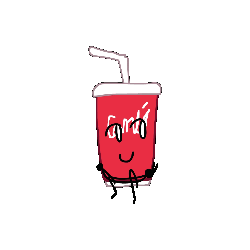 An animated red soda cup character from Object Fool, with a straw and a face, wiggling slightly.