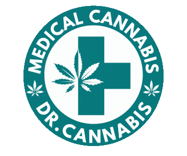 An animated sticker featuring the 'Medical Cannabis Dr. Cannabis' logo, with a cross and cannabis leaves changing colors.