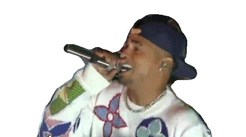 Ozuna performing live, singing into a microphone with passion. A dynamic sticker of the famous artist.