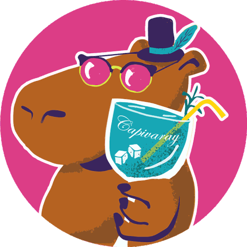 Capivara Blase, a stylish capybara in sunglasses and a top hat, enjoys a refreshing summer cocktail.